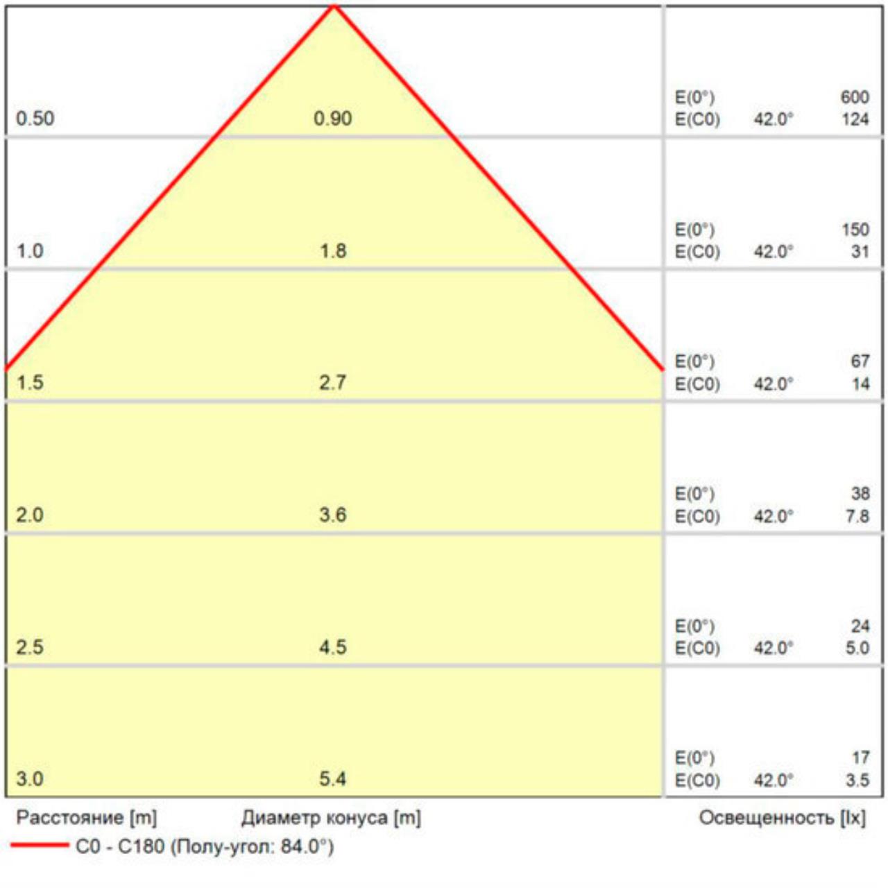 Площадь освещения, м2 1