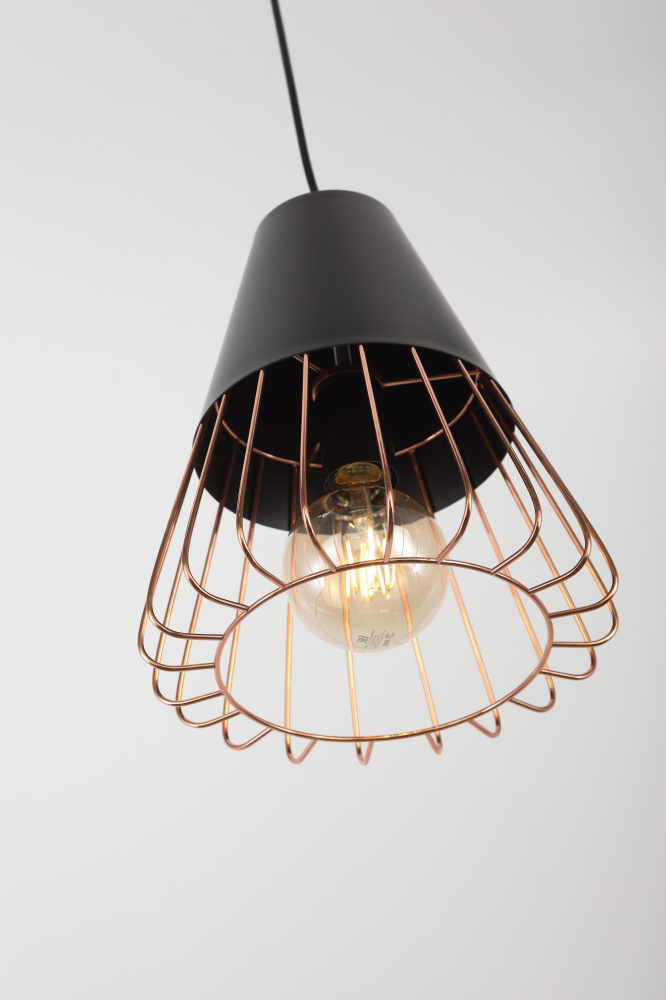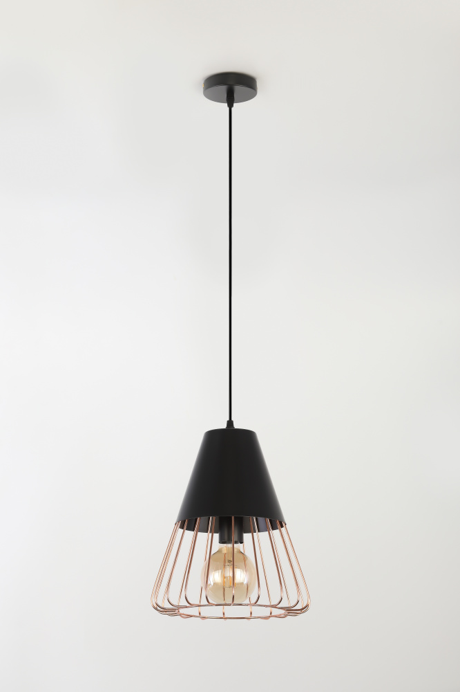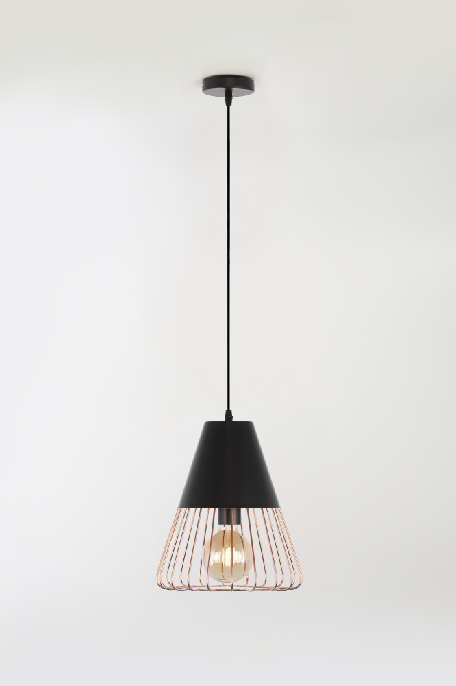 Подвес с подчёркнутой геометричностью арматуры. Миниатюрный, конкретный и уверенный в себе. Имеет стойкое гальваническое покрытие благородного золотого оттенка. Идеален для стилей лофт, минимализм, ретро, сканди. Коллекция представлена подвесом на 1 лампу.
