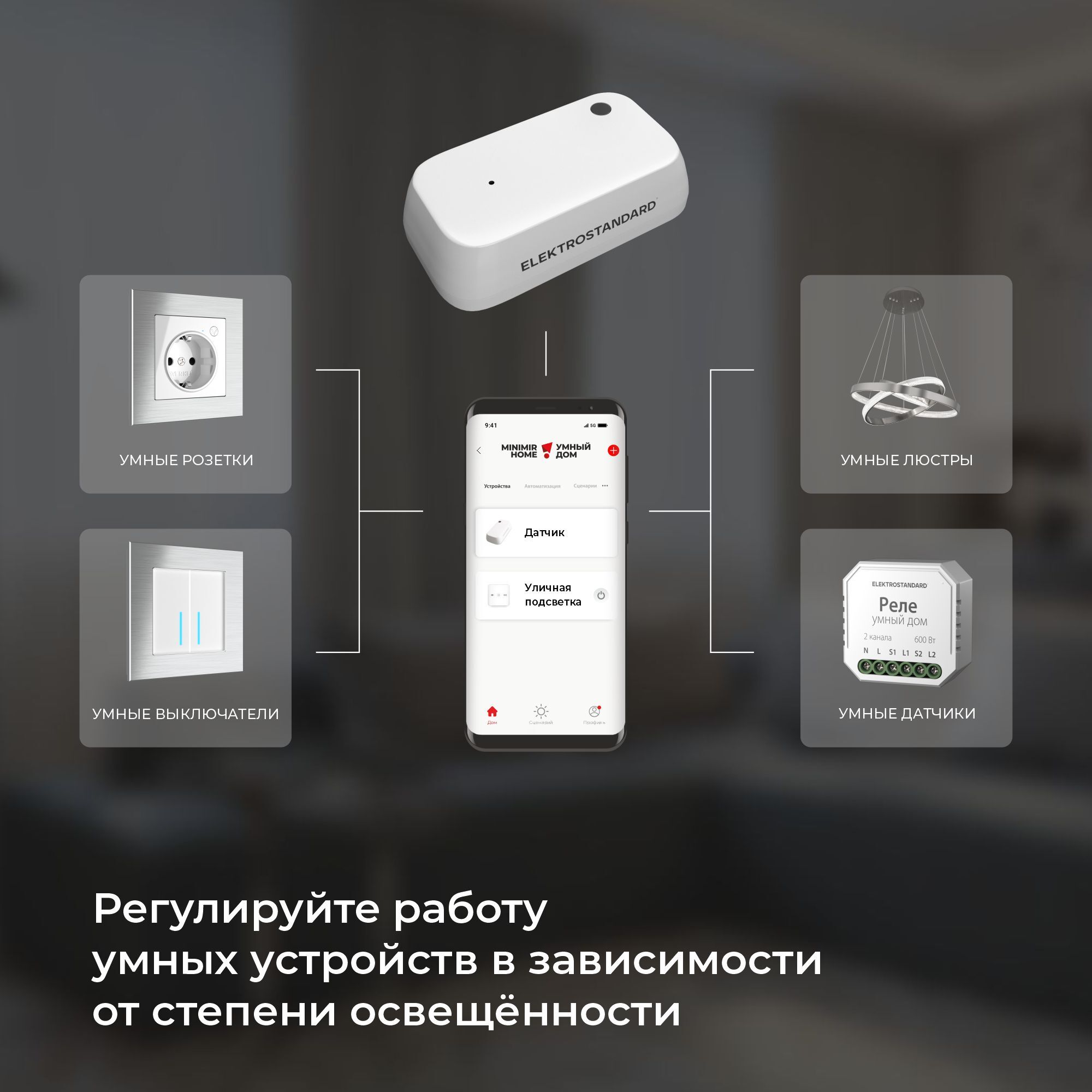 Умный датчик освещения является частью Экосистемы Умный дом  Minimir Home. Устройство измеряет интенсивность светового потока. С его помощью можно создавать автоматические сценарии освещения, привязанные к изменениям уровня освещенности. Например, используя его с умным светильником и терморегулятором, вы можете настроить постепенное включение света и подогрева пола с наступлением сумерек. С умным реле он способен открывать или закрывать жалюзи при достижении определённого уровня освещённости.