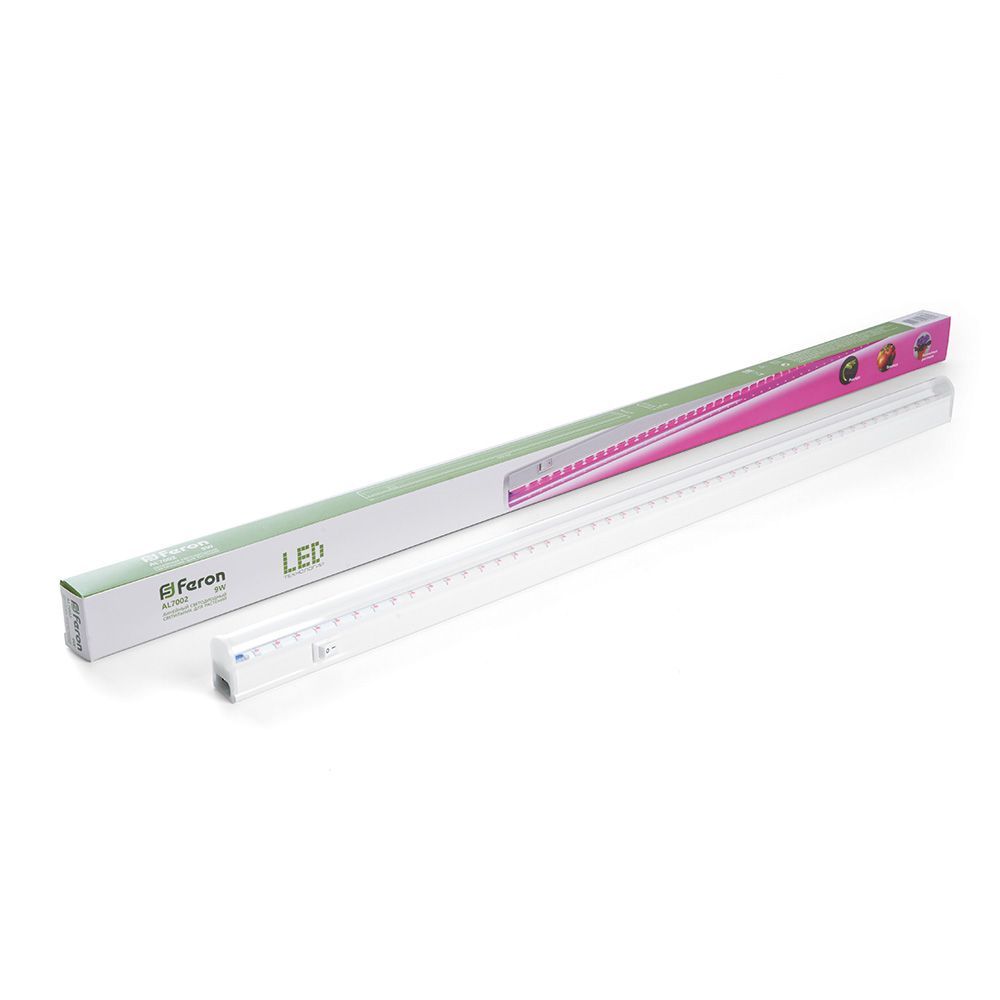 Светильник линейный светодиодный, для растений (ДББ) FERON AL7001, 14W, спектр фотосинтез (красно-синий), 230V, 540Lm, IP40, цвет белый, корпус пластик, рассеиватель пластик, 873*20*31 мм