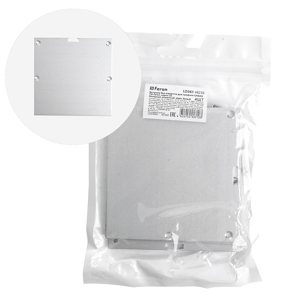 Заглушка для профиля FERON LD361 «без отверстия», цвет серебро, в комплекте 4 шт, 75*2*74мм