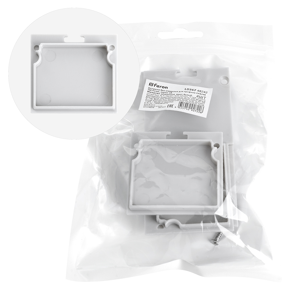 Заглушка для профиля FERON LD367 «без отверстия», цвет белый, в комплекте 4 шт, 44*7*41мм