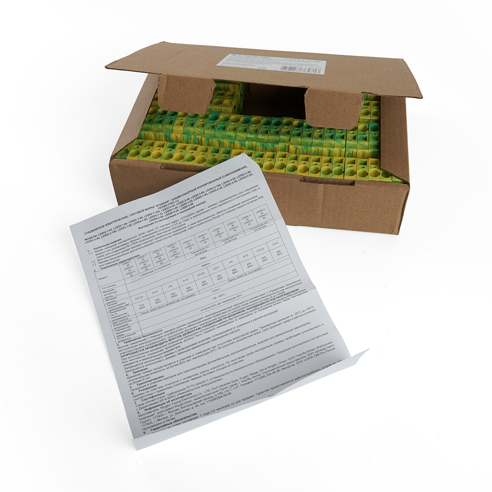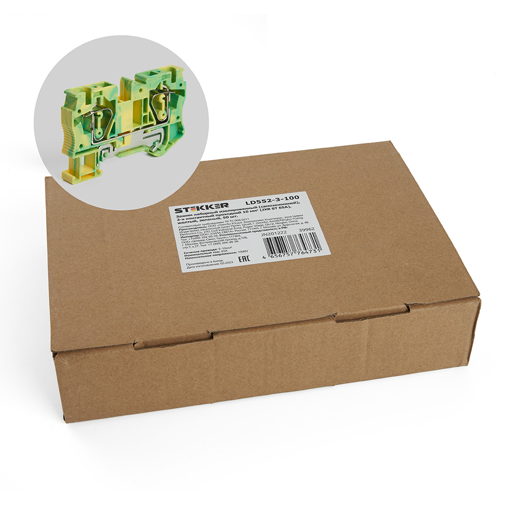 LD552-3-100 ЗНИ Зажим пружинный, 2-проводной проходной 10,0 мм²  (JXB ST 10), желтый, зеленый