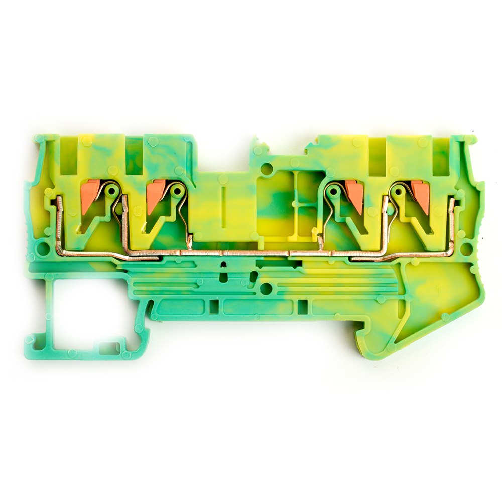 LD574-1-25 ЗНИ Зажим самозажимной, 4-проводной проходной 2,5 мм² (JXB PT 2,5), желтый, зеленый