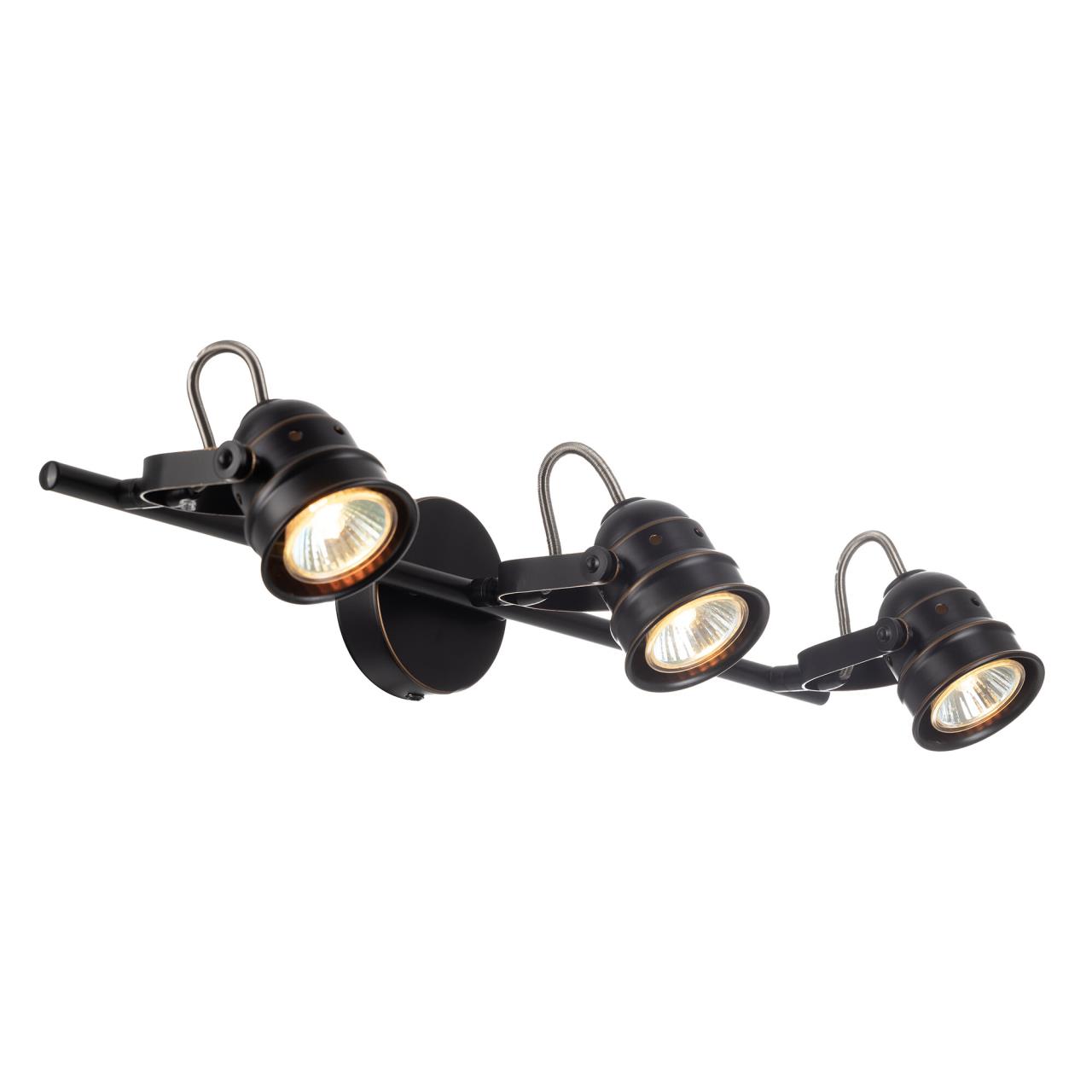 Споты серии «Веймар» с поворотными плафонами удобное и оригинальное решение по освещению пространств ваших помещений. Эта серия светильников настоящая находка для стильных интерьеров. Арматура светильника покрашена в тёмно-коричневый цвет, и декорирована медными вставками. За счёт поворотных плафонов и пропорциональной конструкции светильник настенно-потолочный. Поворотный механизм спота даёт возможность направлять световой поток в любую сторону и даже подсветить стену или потолок за самим светильником. Учитывая, что площадь освещения до 7 квадратных метров, модель можно применять даже как самостоятельный источник света. Особенно хорошо будет смотреться в небольших кухнях или в вытянутых коридорах. В качестве настенного светильника особенно эффективен, как подсветка зеркал, картин, приличных по размеру рабочих зон. В комплект входят галогенные лампы GU10 на 50 ватт. Данные лампы предоставляются в комплекте в демонстрационных целях, гарантия на них не распространяется.
