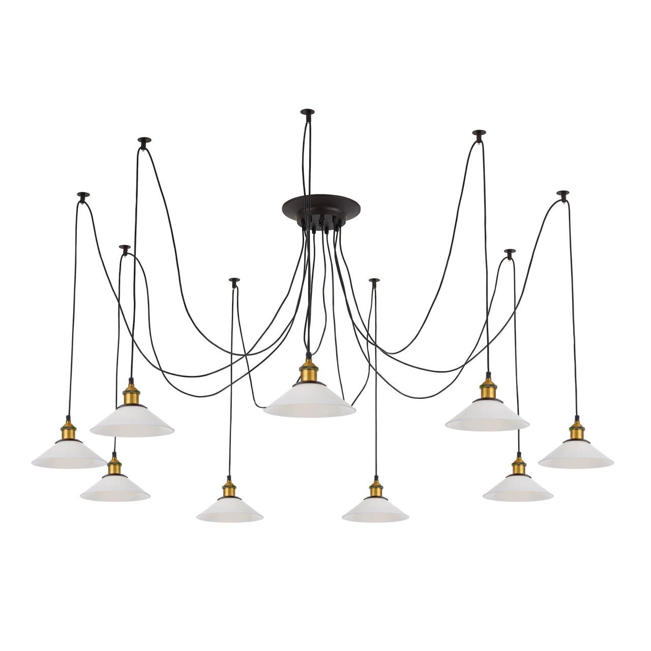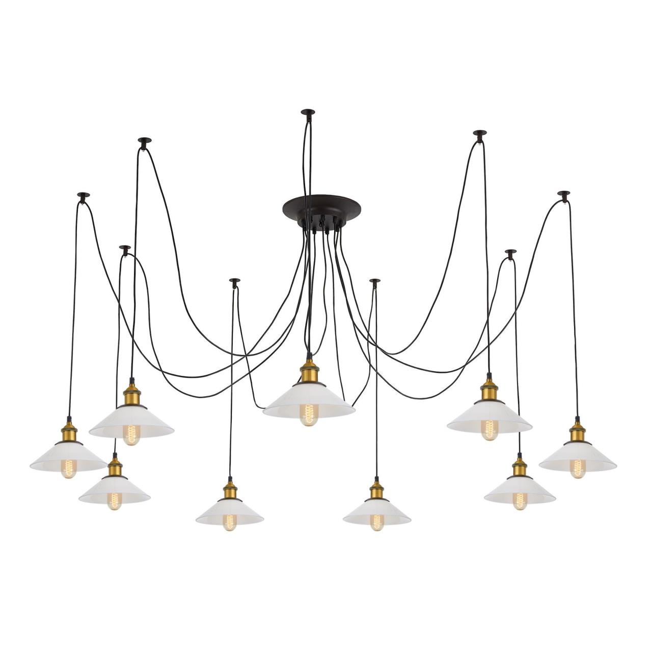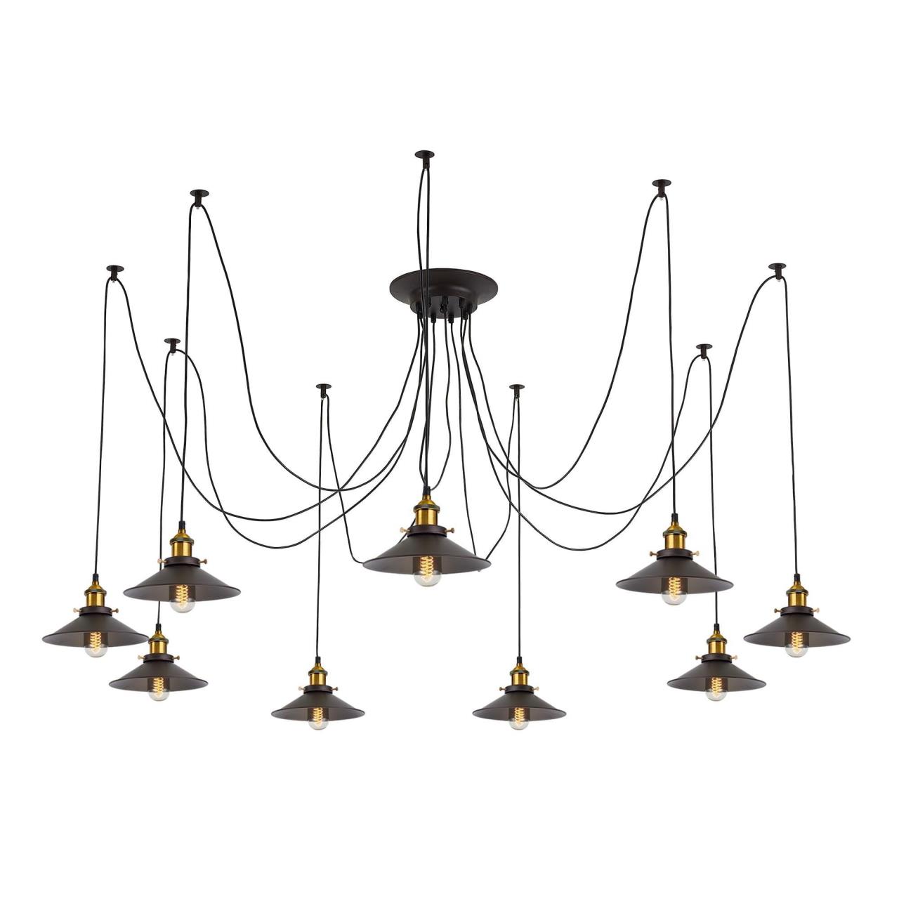 Люстра c многоточечным креплением проводов к потолку, длина провода 215см. Точеный стакан патрона, цвет - старая бронза.