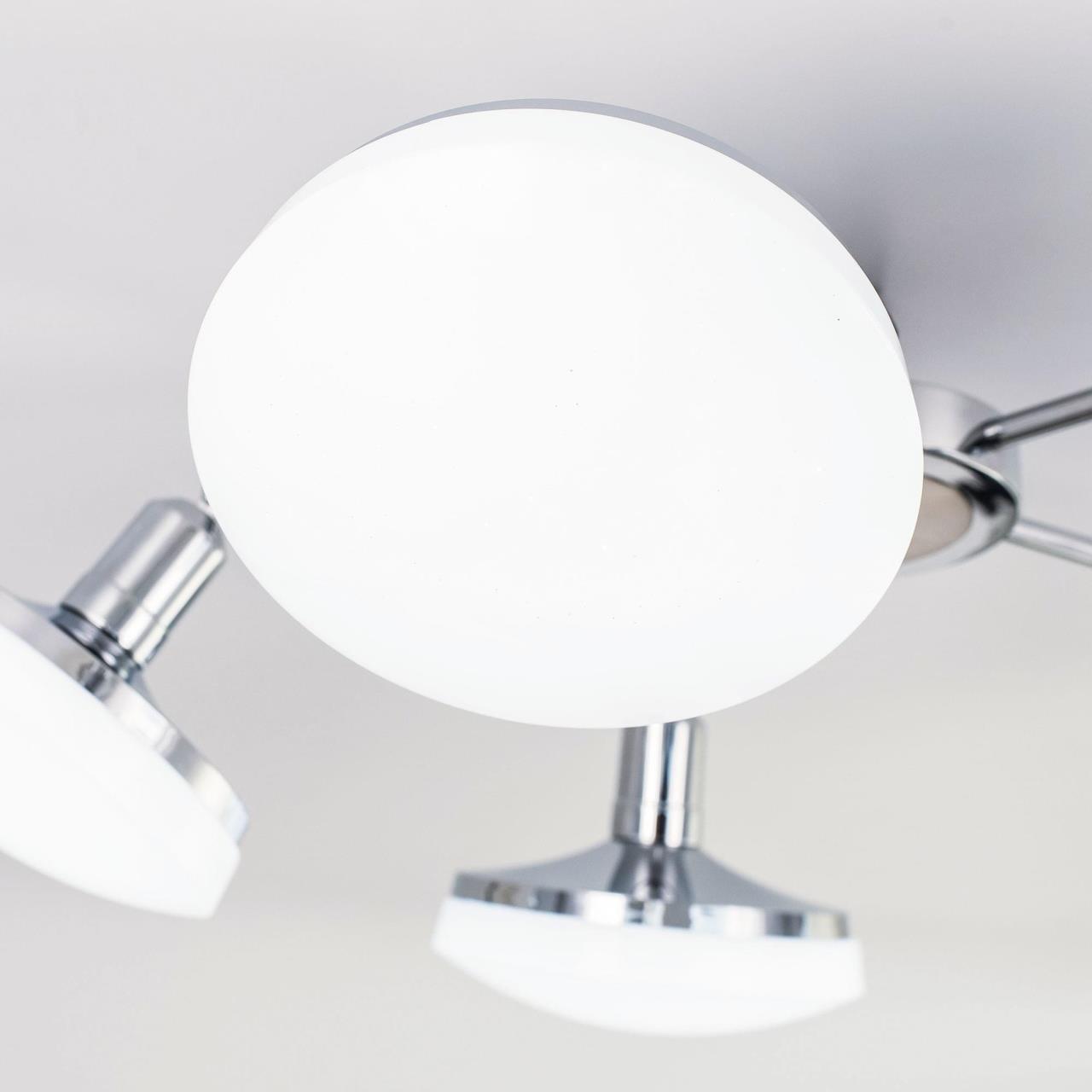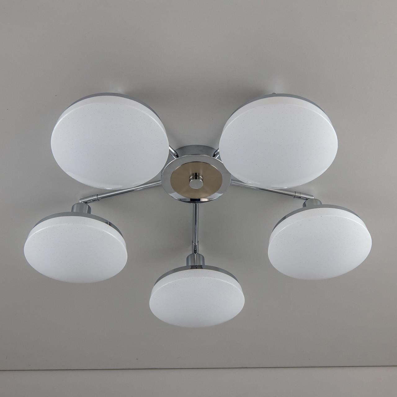 Люстра потолочная Светодиодная Citilux Тамбо CL716251Wz. Недорогая и функциональная серия светильников «Тамбо» подходит для любого типа потолков включая натяжные. Вся серия оснащена встроенным диммером, позволяющим менять степень яркости при помощи обычного клавишного выключателя. Также все светильники из серии представлены в двух вариантах цветовой температуры, первый - 4100К для любителей холодного, нейтрального света и второй - 3000К для ценителей тёплого, мягкого света. Коллекция создана с учётом возможности освещения практически любых по площади комнат. «Тамбо» включает в себя потолочные и подвесные одинарные светильники, которые эффектно подчеркнут достоинства вашей прихожей, а так же модели с тремя плафонами, идеально подходящие для кухни. Для спален и детских комнат, учитывая возможность регулировки степени яркости, оптимальным решением будет люстра на четыре, пять или шесть рожков и настенные бра. Для гостиной комнаты хорошо подойдет потолочная модель люстры, имеющая 8 рожков. Если потолки в гостиной высокие, то идеальным вариантом будет подвесная модель с регулируемой высотой в виде шара - венец серии «Тамбо» с 11 рассеивателями, которая несомненно станет оригинальным украшением вашего дома. В рамках коллекции также выпущены отдельные лампы-светильники с цоколем Е27 под стандартные классические патроны, которые можно использовать как обычные лампы или как сменные рассеиватели для любых светильников этой серии.