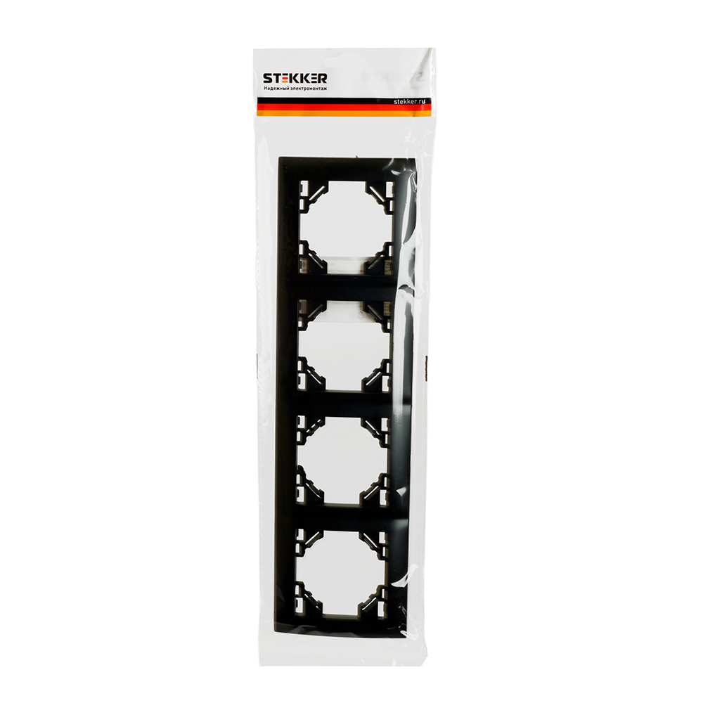 Рамка  STEKKER PFR00-9014-03 (расстояние между монтаж. отверестиями: по гориз. - 270мм, по вертик.- 45мм) на  гнездо, , . Материал: ABS пластик, цвет черный, размер 296*83*11мм. Номинальное напряжение , номинальный ток , диапазон рабочих температур ,