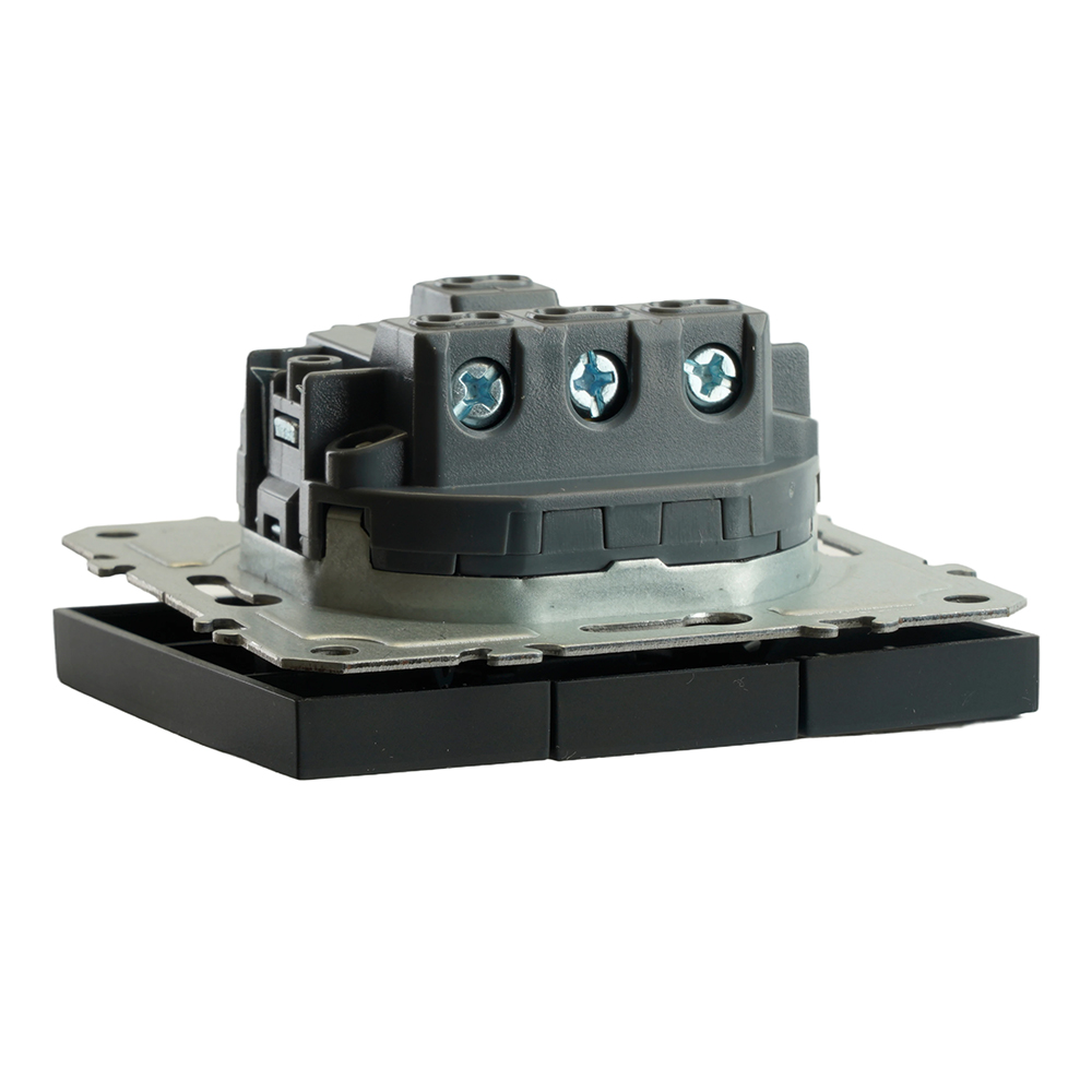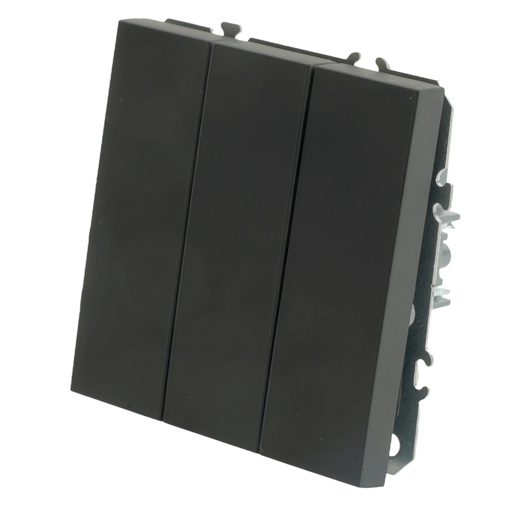 Выключатели трехклавишный STEKKER RSW10-5108-05, серия Эмили тип установки - скрытый, размер изделия 71*71*40мм., цвет черный уголь, soft touch, материал изделия поликарбонат, латунь, сталь. Номинальное напряжение 250 , номинальный ток 10А, 20