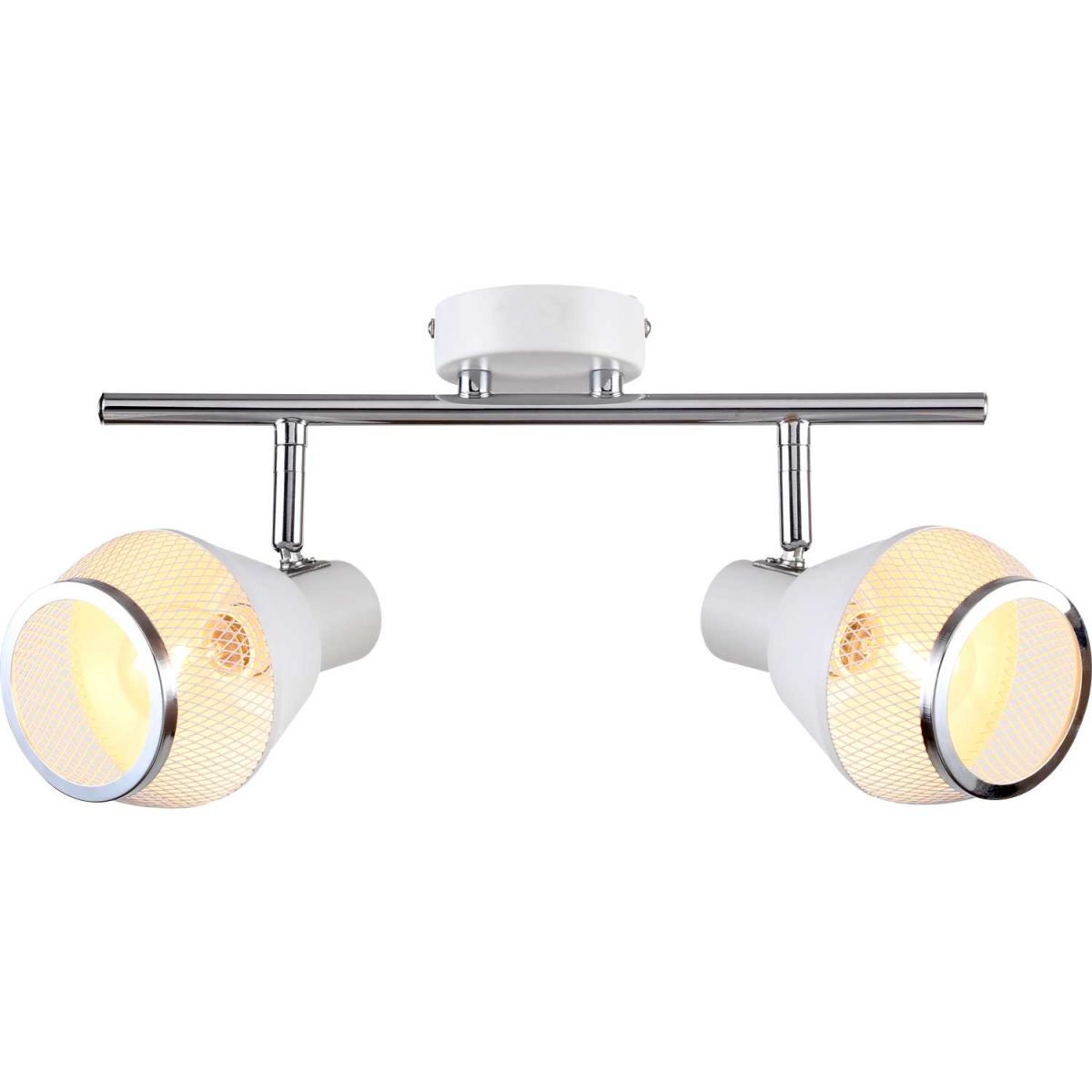 Спот настенно-потолочный из коллекции Vekta / Векта выполнен из металла, окрашенного в белый цвет. Отдельные элементы арматуры гальванизированы в цвет хрома. Металлические плафоны спота декорированы сеткой, окрашенной в белый цвет, и кантом, гальванизированным в цвет хрома. Плафоны имеют поворотный механизм.