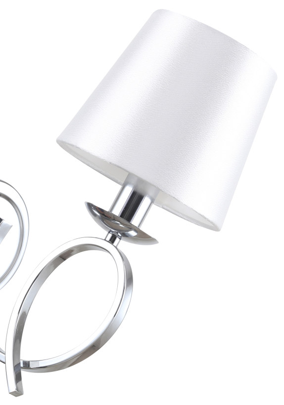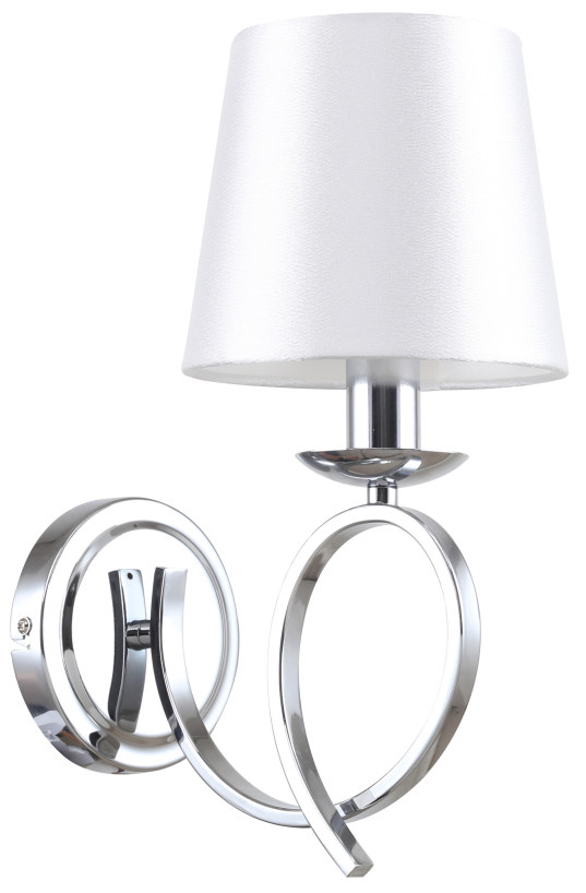 Светильник настенный из коллекции Zafira / Зафира выполнен из металла, гальванизированного в цвет хрома, и декорирован текстильным атласным абажуром белого цвета с термостойким акрилом внутри.